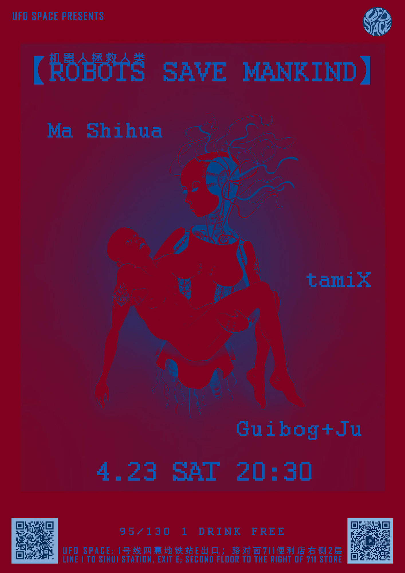 Live experiment with Ju and Josh, robots and cyborgs. Beijing most kawai electronic musician tamiX did a performance that same evening.