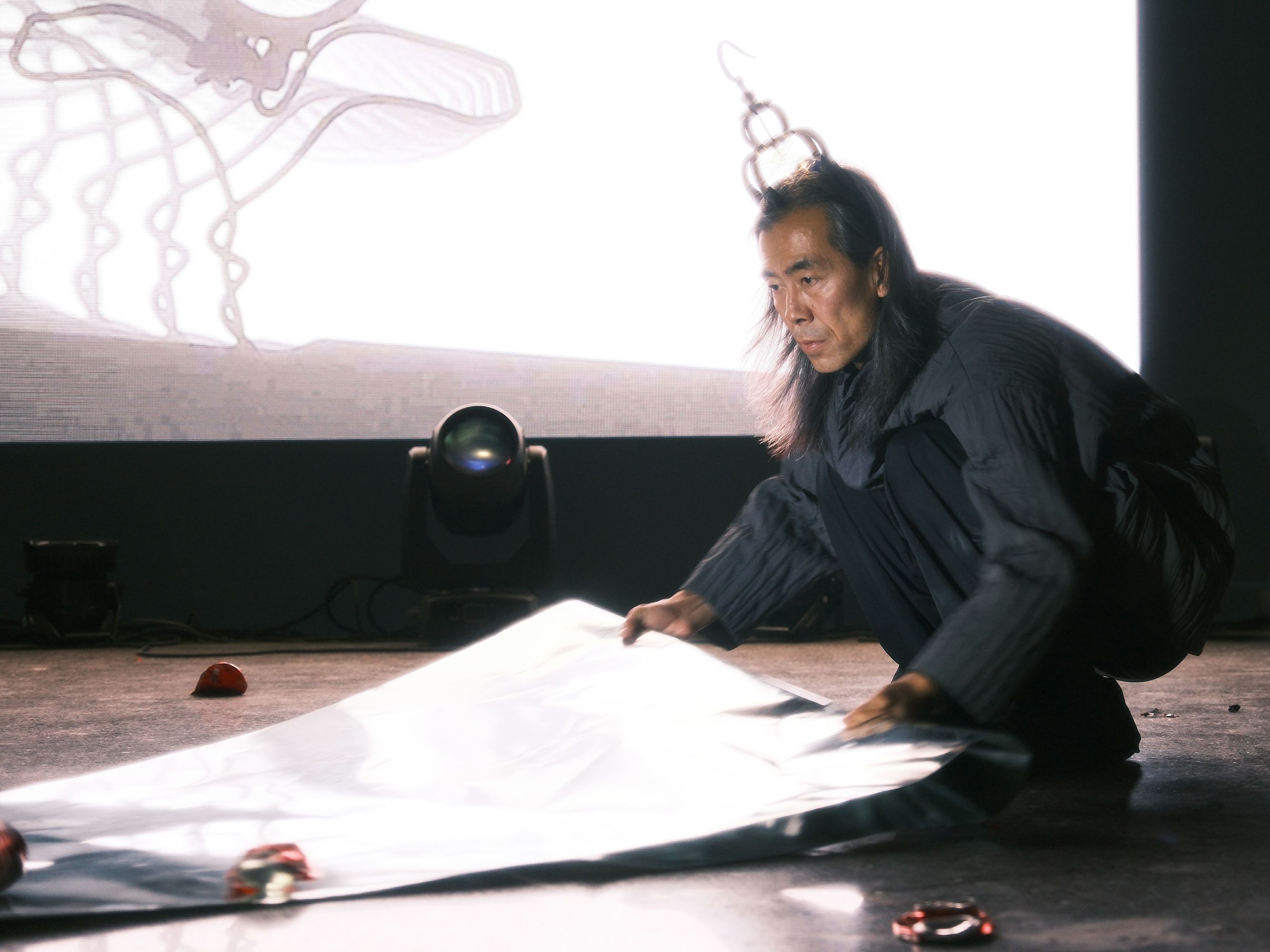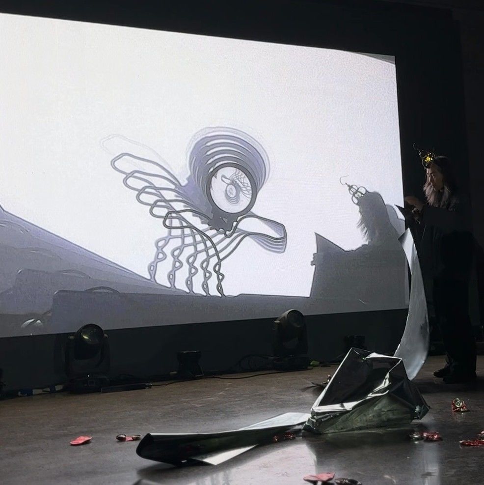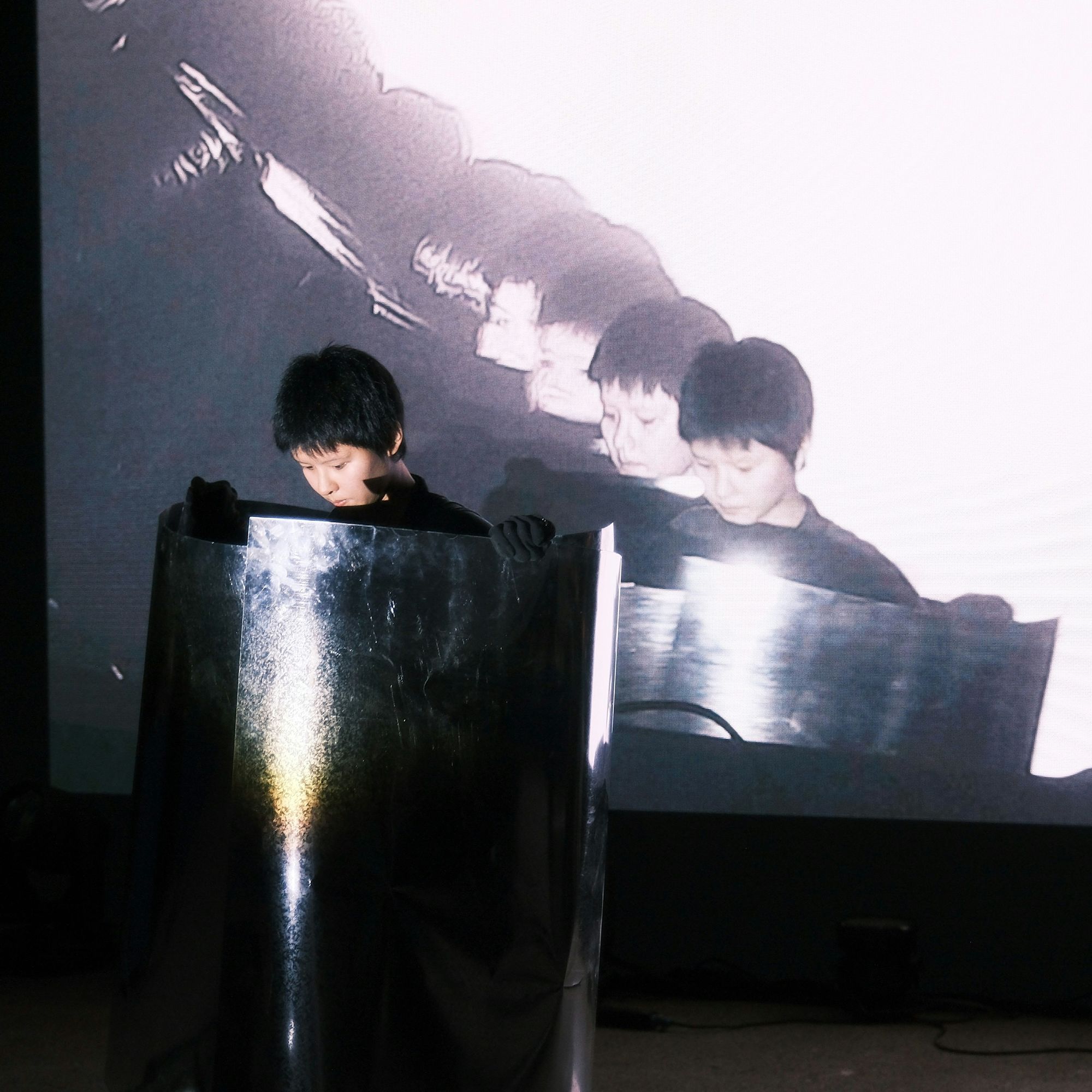 Invited by Cheng Xi to perform at the Wuzhen Theater Festival, we did a short experiment with video feedback and metal plates.