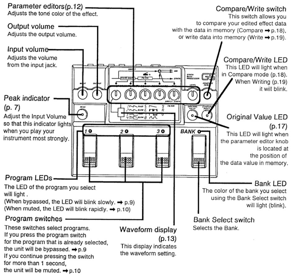 Depending on the settings of the G5's parameter editor or volume, or on the volume and tone settings of the bass connected to the G5, extremely strong oscillations or ultra-low frequency sounds can sometimes be produced. Some types of amps or speaker may be severly damaged in such case.