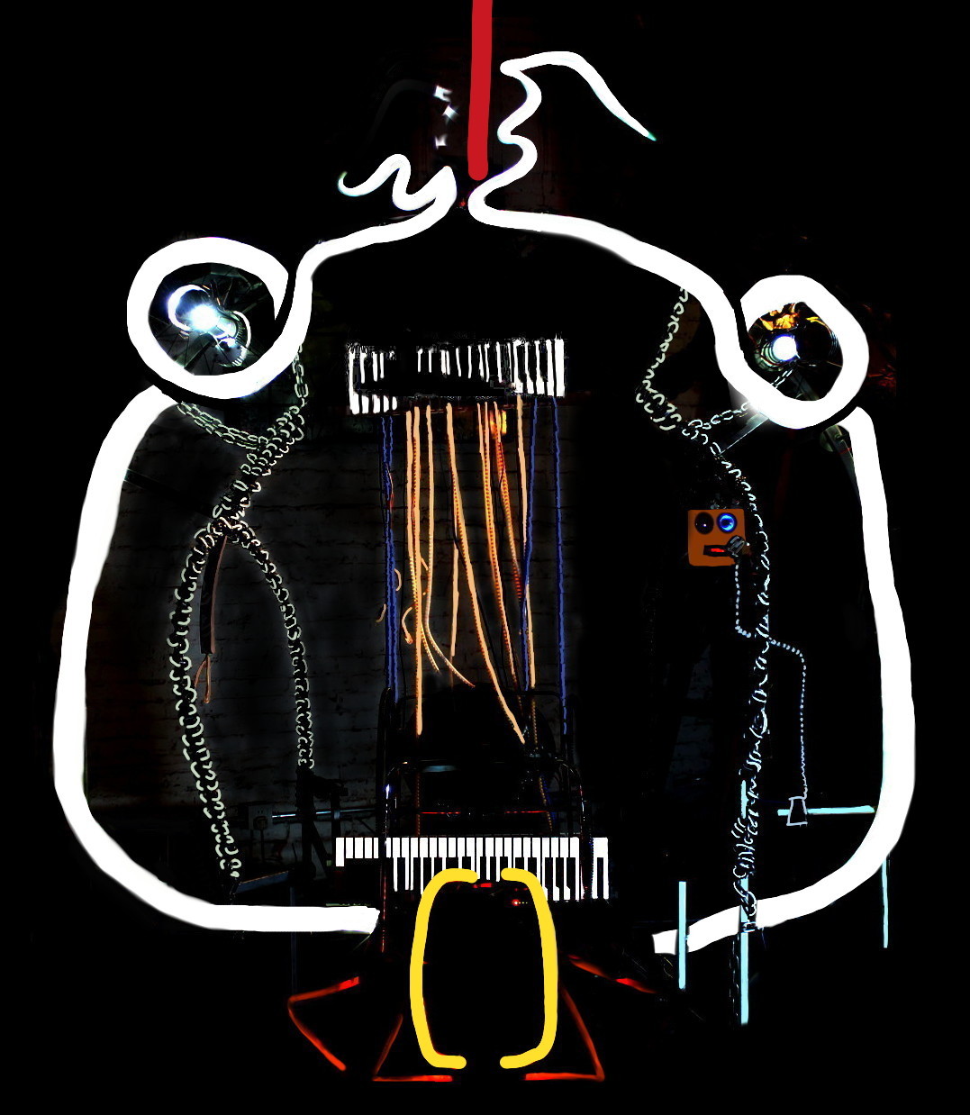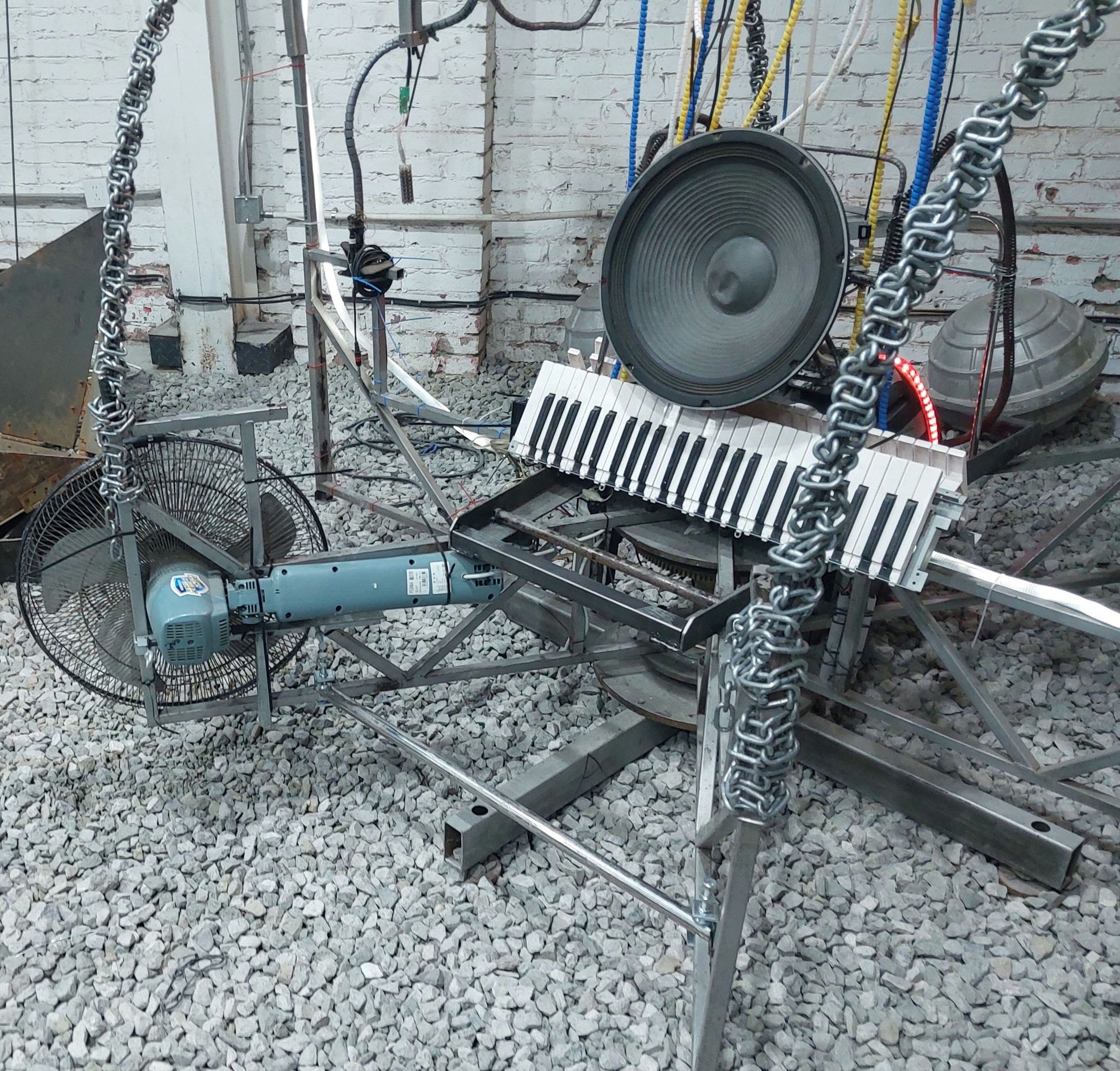 Done in colaboration with Zhao Xuan, Saturn (εη in Chinese) lives in Groundless Factory, a techno club located in Beijing's 798 Art district. He represents anything you like, an ancient child-eating god, a time-machine, a two-faced throne, Kronos, or simply a big frog mouth. Saturn was made out of the rotating table found during Ruins Party nΒ°11 and used as a caroussel on the 2nd floor of the βove βife exhibition in Xiaozu.