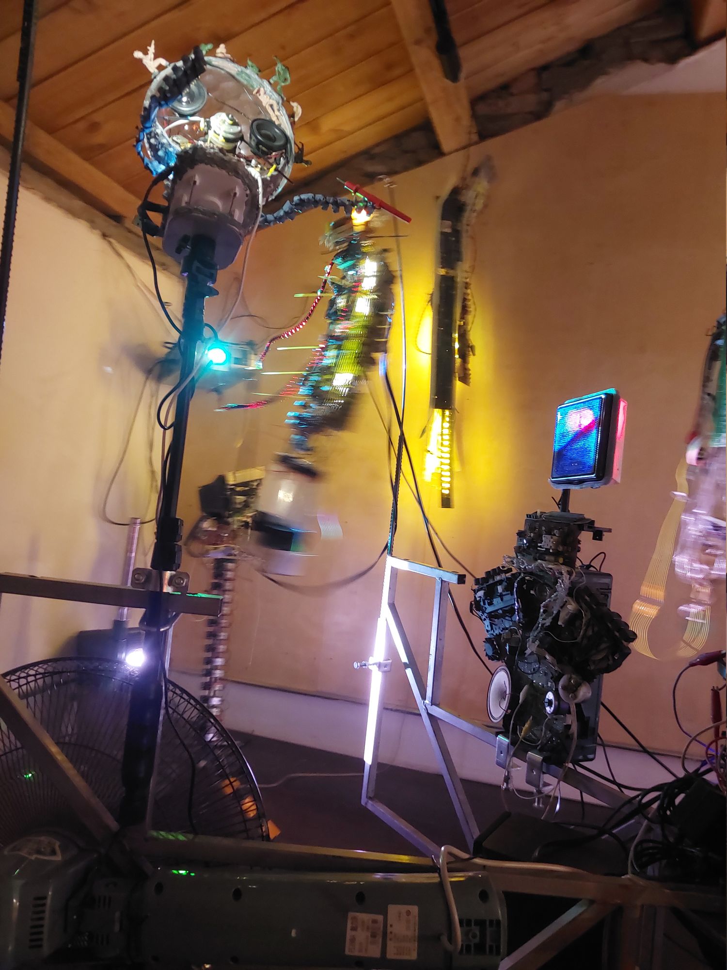 A soldierbot, Serge-Vassily came from a cheap night sky lamp and speaker, mounted on a rotating fan.