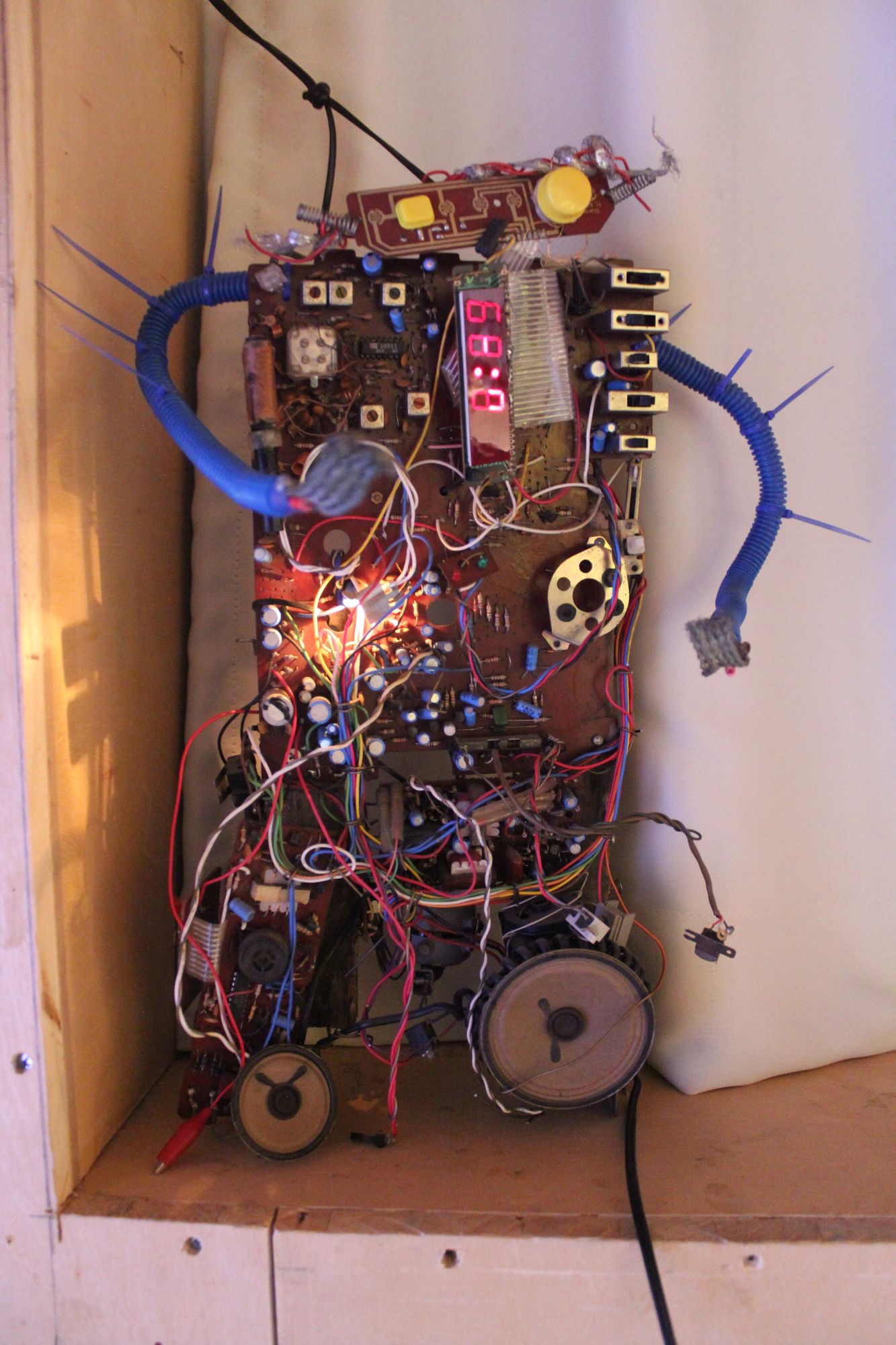 Toto was a telephone-radio-clock answering machine of the eighties. He can pulse its digital clock and vibrates when in good mood.